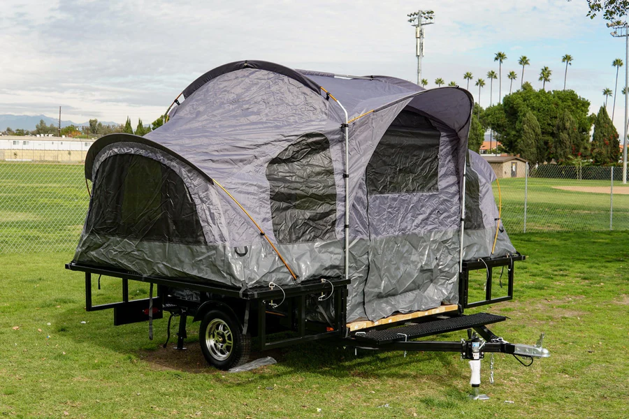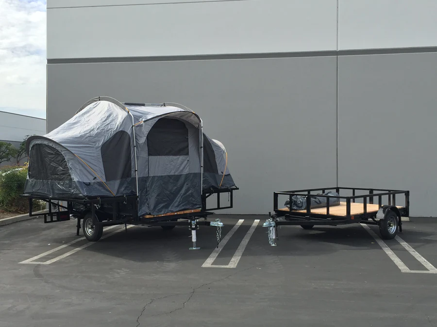 This original and unique trailer is a true two-in-one solution, combining the functionality of a utility trailer with the comfort of a tent camper. Perfect for work and play, this trailer can be used during the week to haul gear and converted into a spacious tent camper in minutes for weekend adventures. The included 150-denier polyester tent sleeps up to six people and features fantastic ventilation with screen vents and six large windows. With its versatile design, this trailer can also be used to transport ATVs, motorcycles, kayaks, canoes, and more. Designed for smooth towing by vehicles with a Class II receiver, this trailer offers comfort, utility, and style in one package.